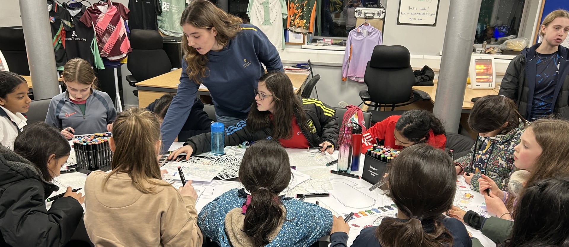 A large part of Anisha’ s dream when she created the Finches, was to get girls involved and loving cricket from an early age. As most of the girls are quite young (8-12 years old), Anisha wanted to have the girls involved in the creation of their kit. Lacuna Sports organised a Design Workshop, where all the girls were encouraged to be as creative as possible in designing their favourite top, using life-sized top templates. They had completely free rein with colours / designs / patterns and motifs. Our Graphic Designer then digitised the artwork during the workshop to produce several versions of the tops, with elements from all the children’s ideas as well as the club logos.